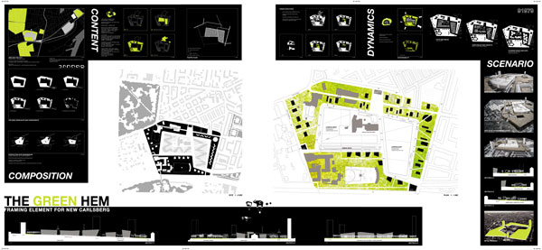 Ein grüner Saum aus 1667 Bäumen rahmt die ehemalige Bierproduktionsstätte. Er nimmt die Carlsberg-Achse mit dem Elefantentor und alle weiteren historischen und zu erhaltenden Gebäude der Brauerei auf - sozusagen das ‚Gedächtnis Carlsberg‘. Gleichzeitig ist er grüner Ring, der übergeordnete Freiraumelemente wie den Frederiksberg Park und einen grossen Friedhof im Westen Kopenhagens koppelt und Schwelle bildet zwischen dem bestehenden Quartier Vesterbro und dem neuen Carlsberg Aktivitätsfeld.