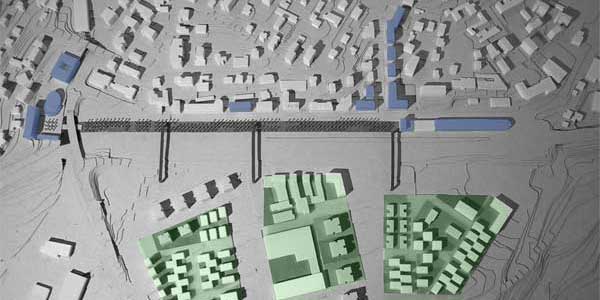 Dieser prozesshaft-flächigen Ausdehnung neuer urbaner Felder setzt das Projekt auf der Stadtseite eine lineare Platzraumgestaltung als städtische Kante entgegen, den „corso“: Ein 400 m langes Aktivitätsband als Ort des Übergangs zwischen Verkehrsmitteln, Stadtquartieren und Kultur- und Freizeiteinrichtungen. Die bestehende Stadtfront wird aufgewertet und in Szene gesetzt, auf ein Bahnhofsgebäude verzichtet.
